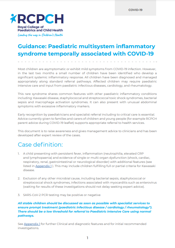 This document for clinicians, which has been developed after expert review of the cases, includes a case definition and approach to clinical management. Also accessible on the Royal College of Paediatrics and Child Health (RCPCH) website.