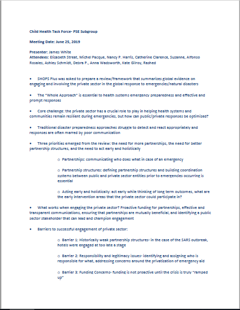 Notes from the June 25, 2019 meeting of the Private Sector Engagement Subgroup.