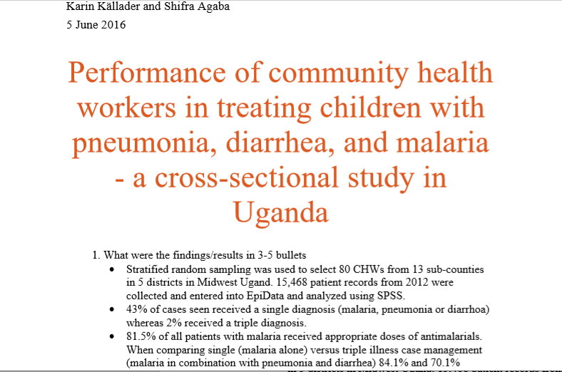 Report shows the results of the study, how findings have influenced its implementation, and how these findings may be used in other countries and settings.